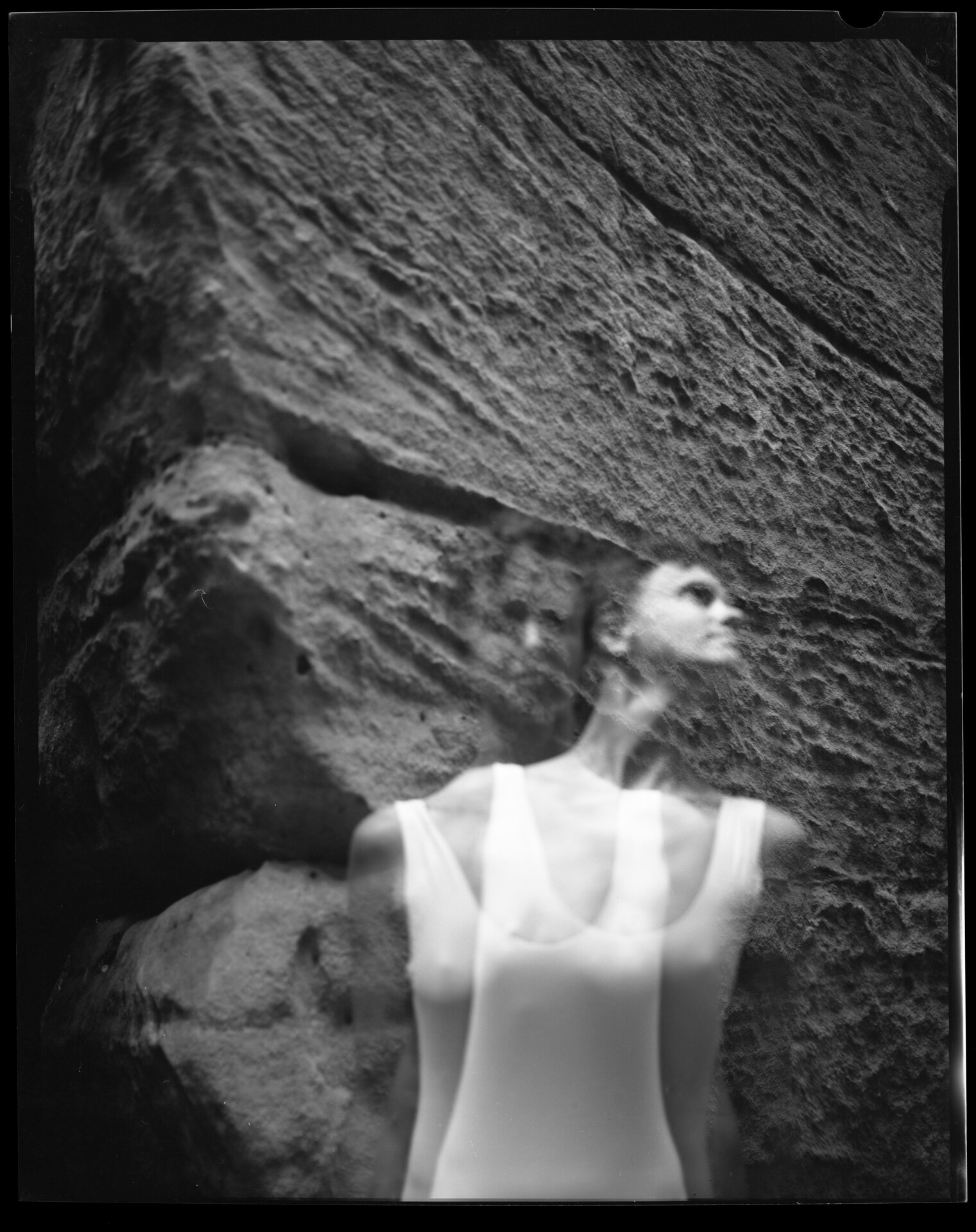 The series was again photographed using a large-format analog camera. This process is slow and requires concentration, which felt very natural for this way of working. The slowness of the medium allowed us to create an atmosphere of calm, flow, and silence that we wanted to bring into the images.