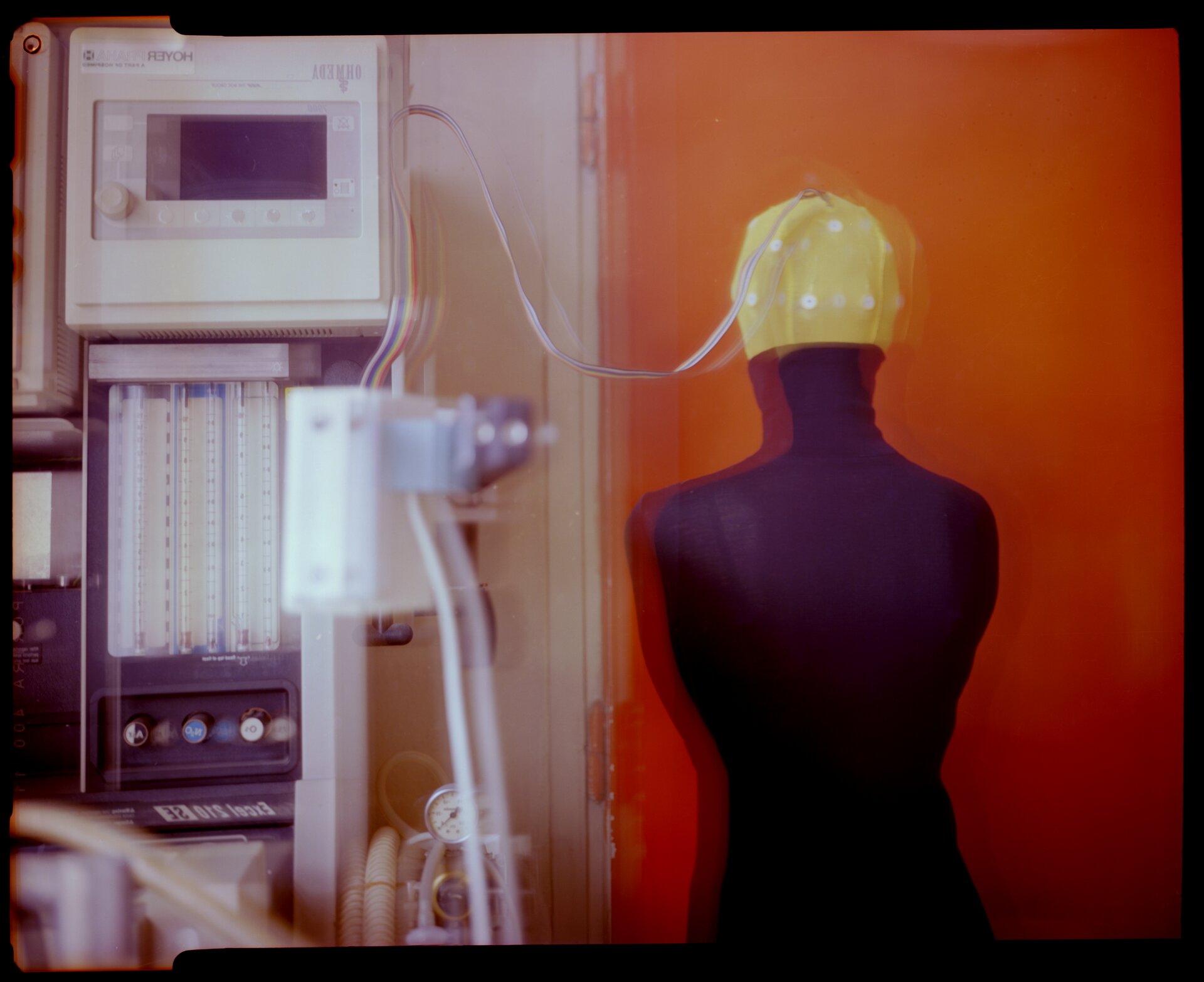 In this series, we intentionally worked with rawness and strong color. The photographs were again taken with a large-format analog camera, but this time in color. We feel that the color supports the atmosphere of the images and helps express our ideas and moods in a harsher, almost surreal space.